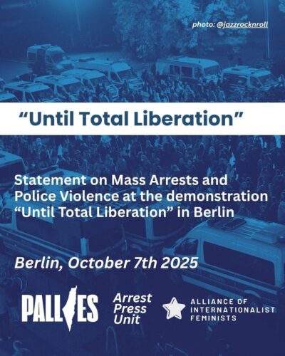 Statement on Police violence and mass arrests at the demonstration 'Until total Liberation', Berlin 07.10.2025 (#anarchists4palestine)