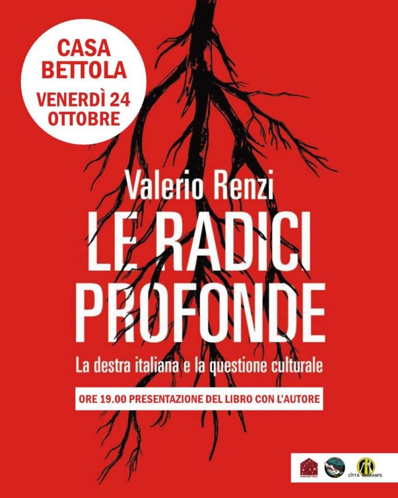 Venerdì 24 ottobre ore 19.00 a #CasaBettola presentazione del libro “Le radici profonde” con l’autore Valerio Renzi. La destra postfascista si porta dietro da sempre un’ossessione, figlia di un complesso d’inferiorità nei confronti della sinistra: la cultura. Da un lato invidia per sé una nobile tradizione intellettuale, dall’altro denuncia un’esclusione a priori dalla produzione culturale. Ma che cosa ha prodotto negli ultimi cinquant’anni la cultura della destra italiana? Quali libri si trovano sugli scaffali di ministri, vicesegratari e parlamentari? Su cosa fonda la propria formazione politica e il proprio apprendistato sentimentale la Generazione Atreju oggi al governo dell’Italia? E cosa […]