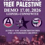 Quelle: Zukunft Fragezeichen – eine anarchistische Stimme aus Leipzig-Süd (Instagram Link) & Anarchismus Collab (Instagram Link) „Eine organisierte internationalistische und anarchistische Perspektive scheint in Leipzig also erst einmal wenig greifbar. Die Demonstration in Connewitz, zu der anarchistische und autonome Gruppen aus verschiedenen Teilen Deutschlands aufrufen und eben auch die Anarchistischen Studis aus Leipzig, ist vielleicht ein Schritt vorwärts. Hoch die internationale Solidarität! Anarchie erkämpfen, in Connewitz und überall! 17. Januar, 13 Uhr Connewitzer Kreuz!" ____________ Demonstration 17. Januar Connewitz Für den 17. Januar mobilisiert ein Bündnis in Solidarität mit Palästina und gegen den Genozid durch Israel zu einer Demonstration nach […]