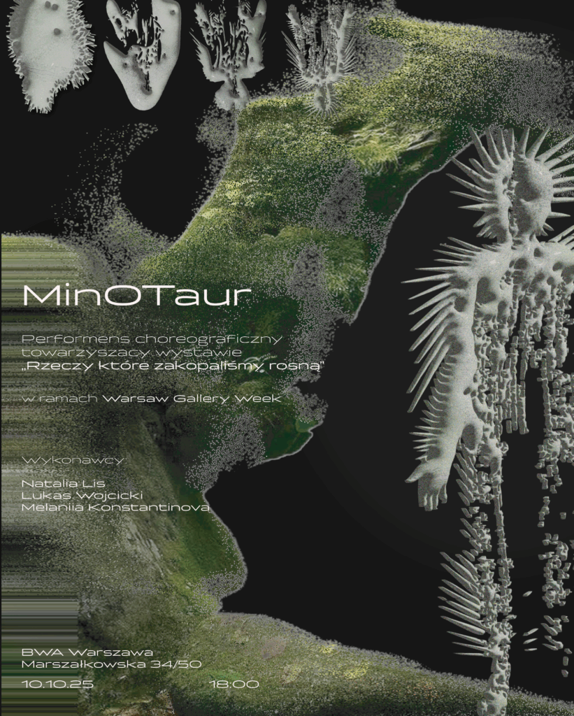 W piątek 10 października o 18:00 w galerii BWA Warszawa performans choreograficzny “Min0Taur”, na który zapraszam razem z Natalią Lis i Melaniią Konstantinovą. Działanie towarzyszące wystawie Magdaleny Abakanowicz i Bartłomieja Flisa “Rzeczy, które zakopaliśmy, rosną” w ramach wydarzeń wokół Warsaw Gallery Weekend Performance choreograficzny “Min0Taur” nawiązuje dialog z rzeźbami Magdaleny Abakonowicz i malarstwem Barłomieja Flisa pokazanymi na wystawie „Rzeczy które zakopaliśmy rosną”. Ciała osób performujących, wykonywane przez nie gesty, ruchy, wydawane odgłosy, stanowić będą dopełnienie statycznej, zbudowanej z nieruchomych przedmiotów ekspozycji. Dzięki wprowadzeniu do wystawy ciała w ruchu, publiczność „Spotkania” będzie miała okazję w zupełnie nowy sposób spojrzeć na pokazane […]