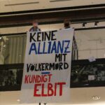 Berlin, 19.09.2025 | „Heute fand vor der Allianz-Zentrale (»Allianz Forum«) am Pariser Platz eine Protestaktion statt. Aktivisten machten auf die Investitionen der Allianz in Rüstungsunternehmen aufmerksam, deren Waffen zur Unterdrückung und im andauernden Krieg gegen das palästinensische Volk eingesetzt werden. Außerdem wurde in der »Mall of Berlin« ein Bannerdrop gemacht und Flyer von oben abgeworfen, die direkt die Menschen im Erdgeschoss erreichten. Eine kreative und eindrucksvolle Protestaktion gegen die Profite aus Krieg und Völkermord." (@abdallahxbln – Instagram) Fotos von: @maliquue (Instagram) und Montecruz Foto (X)