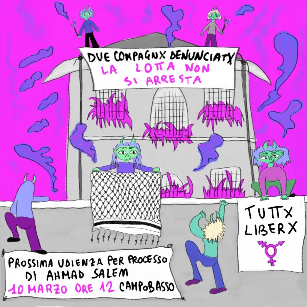forse è più semplice partire da cosa non siamo. non siamo un collettivo, non siamo una struttura, siamo cagnx scioltx. ci siamo ritrovate nelle piazze per la palestina di settembre e ottobre e, a seguito della repressione che ne è conseguita, abbiamo deciso di essere rete di solidarietà e complicità. abbiamo cercato dei modi con cui lx imputatx potessero scriverci, in modo da vederci, conoscerci, supportarci, organizzarci. l’obiettivo dell’assemblea è semplice: rompere l’isolamento con cui la repressione cerca di indebolirci e supportarci dal punto di vista finanziario e umano. l’idea del sito nasce dall’esigenza di poter creare un contenitore di […]