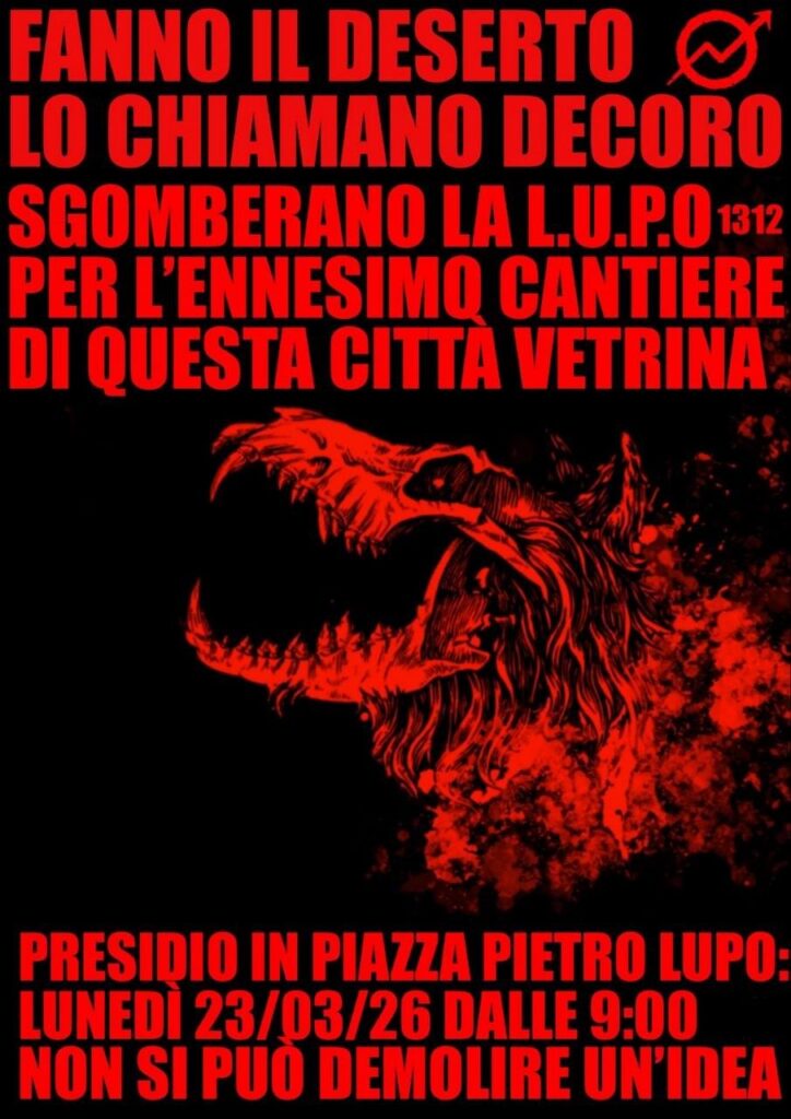Diffondiamo un volantino comparso nella notte a Cremona: Una spina nel fianco. Il silenzio è pericolo, il buio inebria il rischio. È l’angoscia a generare il vuoto, la sensazione di trovarsi sul ponte dove si guarda giù e si nota l’abisso, dove non si distoglie lo sguardo dal baratro che si apre davanti al mondo: ma è proprio in momenti come questi che si tende a sentirsi vivi, senza mediatori di ogni risma. Strepiti di industrie o stillicidio di dispositivi, come il chiacchiericcio democratico, sono insopportabili perché l’immaginazione, la sedizione, la sensibilità, la riflessione e il sogno ad occhi aperti […]