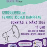 Auch in diesem Jahr gibt es wieder mehr als genug Gründe, am 8. März für unsere Rechte auf die Straße zu gehen! Auf der ganzen Welt gibt es Bestrebungen, bereits erkämpfte Rechte wieder wegzunehmen, und dabei hatten wir ja noch gar nicht alles erreicht, was wir wollten! Unsere Kundgebung anlässlich des Feministischen Kampftages findet am 8. März ab 14 Uhr am Rheinufer links der Theodor-Heuss-Brücke statt! Euch erwarten Redebeiträge, politische Songs und eine kämpferische Performance! 🔥✊ Lasst uns gemeinsam laut sein! 📢🔥✊Wir freuen uns auf euch! Solidarisch! Queerfeministisch! Intersektional!