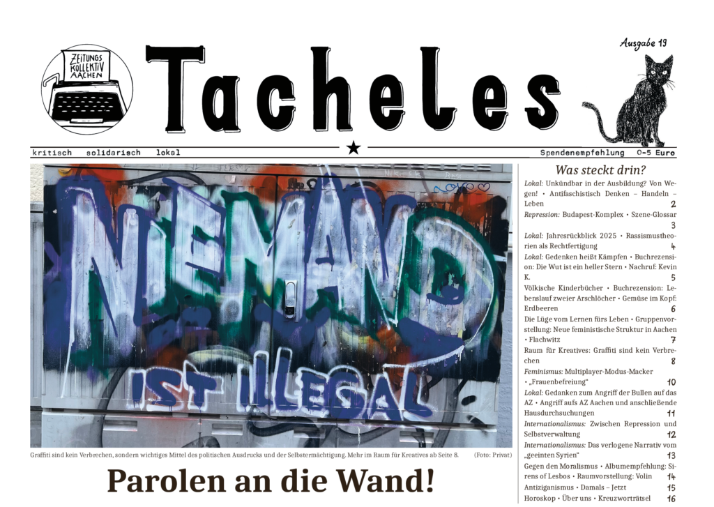 Stadtrundgang am 20. September um 16:30h / Start: Platz der Matrosen, Kiel 2015 erreichten zehntausende Menschen u.a. aus Syrien über die sogenannte Balkanroute Nordeuropa. Kiel wurde durch die Fähranbindungen zu einer wichtigen Station auf dem Weg nach Skandinavien. Zehn Jahre später berichtet das nara – netzwerk antirassistische aktion kiel vom Aufbau seiner Solidaritätsstrukturen – von Schlafplätzen, Verpflegung, medizinischer Hilfe und Fährtickets, aber auch von Kämpfen um Selbstbestimmung, offene Grenzen und Bewegungsfreiheit für alle. Wir erinnern an jene Wochen, in denen Solidarität alltäglich wurde und Grenzen für einen Moment überwindbar schienen.