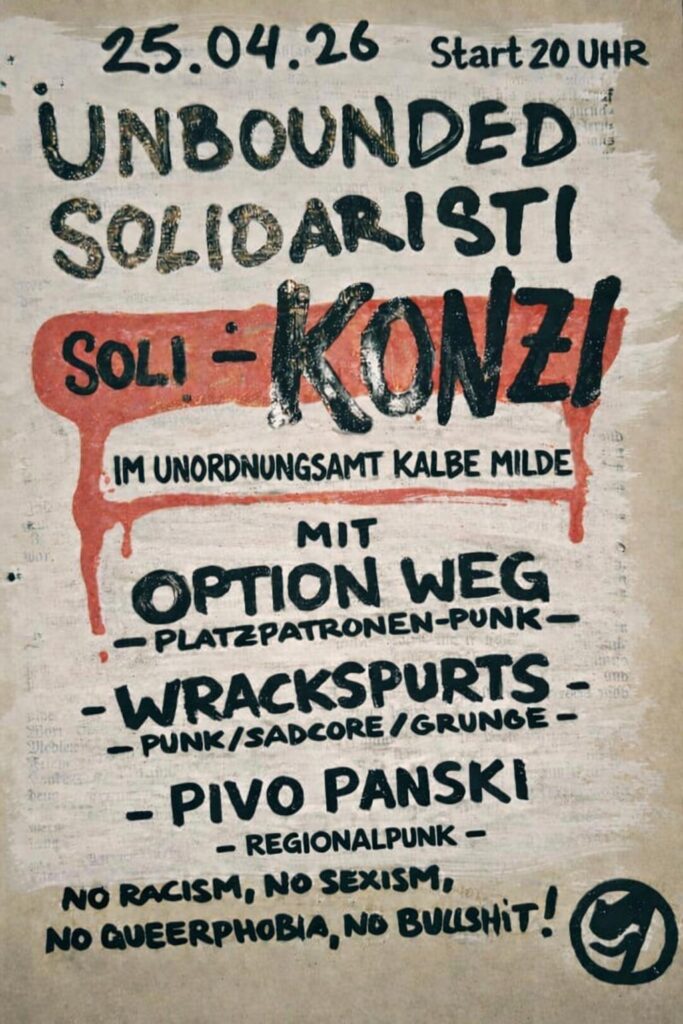الحب لأحيائنا، النضال ضد العدو الطبقي! احتفالاً بيوم العمال الأحمر – متحدين وثوريين في شرق هامبورغ! الأصدقاء، الجيران، الزملاء، الرفاق! حان الوقت لتغيير شيء ما. كل يوم نكدح حتى السقوط، ثم لا نستطيع أن نفعل شيئاً في ساعات الفراغ القليلة المتبقية، سوى إدارة شؤون المنزل أو الجلوس أمام الشاشة لتشتيت أنفسنا. أولئك منا الذين ما زالوا يذهبون إلى المدرسة، يتم إعدادهم هناك بالفعل لهذه الحياة في ظل المنافسة الرأسمالية. نحن نثني ظهورنا، لكننا لا نستفيد من ذلك: عندما نتقاعد في يوم من الأيام، لن يتبقى لنا سوى المزيد من الوحدة ومال بالكاد يكفي للعيش. يريد المستشار الألماني الآن إعادة ألمانيا […]