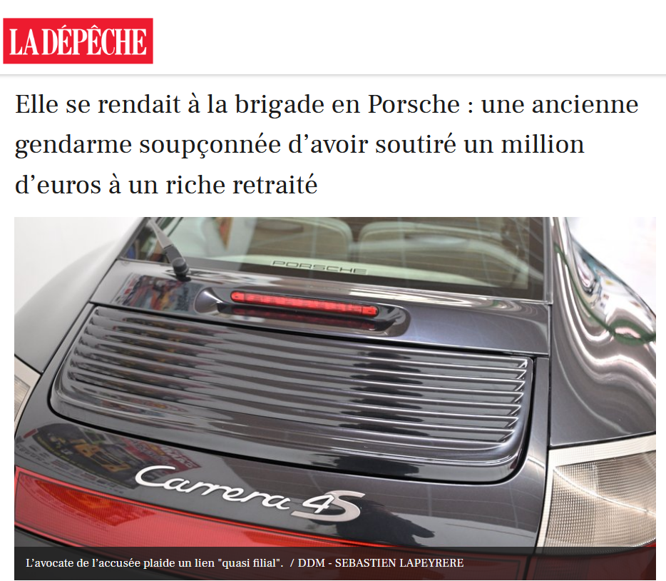 Elle se rendait à la brigade en Porsche : une ancienne gendarme soupçonnée d’avoir soutiré un million d’euros à un riche retraité (Anti.MÉDIA)