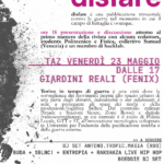 TAZ contro la guerra e presentazione di “Disfare – Per la lotta contro il mondo-guerra”, pubblicazione trimestrale contro la guerra (Torino, 23 maggio 2025) TAZ venerdì 23 maggio dalle 17,presso Giardini Reali (Fenix)Ore 18: Presentazione e discussione attorno al primo numero della rivista “Disfare – Per la lotta contro il mondo-guerra”, pubblicazione trimestrale contro la guerra nel momento in cui il campo di battaglia è ovunque, assieme ad alcunx redattorx, studentx Politecnico e Fisica, collettivo Sumud (Venezia) e un membro di Hacklab.Torino in tempo di guerra è una città dove la sorveglianza dei movimenti interni allo spazio urbano di una […]
