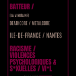 Balance Ta Scène respecte l’anonymat des victimes ainsi que de tous les protagonistes en rapport avec chaque témoignage reçu.Veuillez consulter LA CHARTE avant de nous contacter.Si vous êtes victime ou témoin, contactez-nous via notre formulaire anonyme (lien dans la catégorie CONTACT). ON VOUS CROÎT, VOUS N’ÊTES PAS SEUL·E·S.