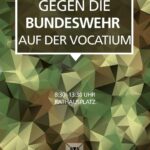 Wie bei so vielen Berufsmessen ist auch auf der Vocatium die Bundeswehr mit mehreren Ständen vertreten.Die Bundeswehr ist hier, um Schüler*innen zu rekrutieren. Viele davon auch minderjährig. Das sind nichts anderes als Kindersoldaten, die, die deutsche Politik sonst an jeder Stelle kritisiert, aber selbst umsetzt.Mit dem letztes Jahr beschlossenen bayerischen Bundeswehrförderungsgesetz und den hunderten Milliarden die für die Bundeswehr freigesetzt werden, bewegen wir uns immer weiter in eine Spirale der Militarisierung. Dieser stellen wir uns entschlossen entgegen, wir werden nicht für Profitinteressen als Kanonenfutter an die Front gehen. Gegen die Wiedereinführung der Wehrpflicht, gegen die Bundeswehr, gegen jedes Militär.