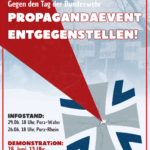 Wir teilen hier unseren Text zum Veteranentag, verbunden mit dem Aufruf zu unserer Demonstration gegen den Tag der Bundeswehr am 28. Juni. Kommt zahlreich, bringt Kolleg:innen, Freund:innen und Familie mit! Wir sterben nicht für die Kriege der Bonzen!!!