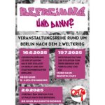 Gedenkspaziergang zu der Situation nach der Schlacht um Berlin und dem Stadtkommandanten Bersarin. Datum: Montag, 16. Juni 2025 um 18 Uhr Ort: S Lichtenberg (Eugeniu-Botnari-Platz) Infoveranstaltung zur Situation von Überlebenden der Verfolgung und KZs. Datum: Samstag, 19. Juli 2025 um 15 Uhr Ort: Bunte Kuh, Bernkasteler Str. 78, 13088 Berlin Vortrag zum Einfluss von Altnazis nach der Befreiung. Datum: Samstag, 2. August 2025 um 20 Uhr Ort: Bandito Rosso*, Lottumstraße 10a, 10119 Berlin *leider nicht barrierearm (Treppe mit 7 Stufen am Eingang: Außen-Klingel betätigen, wenn ihr Unterstützung braucht!; einzelne Stufen im Innen-Bereich; Holzstühle mit Rückenlehne und ein Sofa; abgetrennter Rauch-Raum, […]