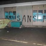 Bassecourt (Jura, Schweiz) 10. Juni 2025 Die BKW stinkt Wir haben bei einem BKW Lager in Bassecourt vorbeigeschaut und stinkende sowie farbige Gruesse hinterlassen, weil wir uns an ihrer Mitarbeit am Geothermie – Projekt in Glovelier stoeren. Die Buttersaeure soll unseren Unmut an der Missachtung des Willens der Bevoelkerung ausdruecken. Verpisst euch aus dem Jura! No Fracking à Glovelier!
