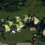 May 9, 2025 More than a dozen people were taken into custody during a protest at Brooklyn College on Thursday. The NYPD said seven people were arrested, and seven others were issued summonses. Video showed demonstrators on the school’s quad near eight tents. The protesters had Palestinian flags and several banners, including one reading, “Stop cop city. Free Palestine.” The protest happened one day after dozens of pro-Palestinian demonstrators were arrested after occupying a room in Columbia University’s Butler Library. Found on mainstream news.