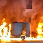Rom (Italien) 30. Oktober In der Nacht vom Mittwoch 30 Oktober haben wir zwei Kontroll Elektroschraenke und das Venitlationssystem auf dem Dach eines MC Donalds in Rom an der Via Prati Fiscali, in Brand gesteckt und Graffittis hinterlassen. “Gegen den laufenden Genozid in Palaestina und gegen die Unterstuezung Israels”.