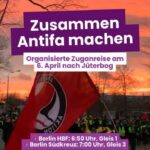 vom Solidaritätsbündnis Antifa Ost am 30.10.2024 Am 21. Oktober 2024 wurde unser Freund und Gefährte Nanuk von Zielfahndern des BKA und des LKA Sachsen in Berlin verhaftet. Sie haben ihn nach Karlsruhe verschleppt, wo ein Bundesrichter seinen Haftbefehl in Vollzug gesetzt hat. Seit Mittwoch befindet sich Nanuk in der JVA Moabit in Berlin – Und genau dort gehen wir hin. Wir rufen alle dazu auf, sich am 02. November 2024 um 17:00 Uhr solidarisch zu zeigen und sich der Demonstration vor der JVA Moabit anzuschließen. Nanuk wird vorgeworfen, Mitglied der sogenannten kriminellen Vereinigung im Antifa Ost-Verfahren zu sein, in dessen […]