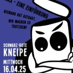 Wir möchten euch herzlich zu unserer Schwarz-Roten Kneipe im April einladen. Niemand hat gefragt! Wir machen es trotzdem! In dieser SRK wollen wir mal wieder gefährliches Halbwissen über Marx verbreiten. Diesem alte weiße Mann geht es bekanntlich darum, „alle Verhältnisse umzuwerfen, in denen der Mensch ein erniedrigtes, ein geknechtetes, ein verlassenes, ein verächtliches Wesen ist.“ Doch was bedeutet das konkret in der Praxis? Ist Kommunismus vielleicht doch mehr als „Sowjetmacht plus Elektrifizierung des Landes“? Ist es mehr als die Bourgeoisie zum Teufel zu jagen, die Diktatur des Proletariats oder gleich den Rückzug in den Primitivismus bzw. die Anbetung eines mysteriösen […]