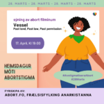 28. mars bróta vit abortstigma saman, so at vit saman kunnu byggja ein heim har ið øll hava fría atgongd og rætt til virðiliga abortrøkt. Kom við og: 💚 Tosa opið og frítt um abort—Abort er vanlig. 💚 Set teg upp móti misupplýsingar & stigma við brúk av fakta. 💚 Lyft upp lokalt samskipaða abortrøkt. At niðurbróta abortstigma byrjar við at tosa um tað. Kom vi í samtaluna við #Avstigmatiserabort Vit vóna at síggja teg 17. apríl til sýningina av heimildarfilminum Vessel. Grafikkurin er týttur og tillagaður frá March28.org. Fyri meira pro-abort kunning fylg @Womenhelporg @abortionpil @Abortion_network_Amsterdam @shoutyourabortion (á Instagram) […]