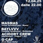 O.P. JOLLYROGER E COLLETTIVO SORGENTE PRESENTANO: TREMA FEST. 3 (live+djset) SABATO 12 APRILE 2025 ON STAGE DALLE 22:00 🔥MASMAS (live – nu/liminal jazz da Roma) Il collettivo si forma nel 2021 grazie alla residency di Simone Pappalardo all’Ex Mattatoio di Roma, che a sua volta invita Simone Alessandrini e Mauro Remiddi per delle session di sperimentazione e live electronics; quell’esperienza produrrà il loro primo EP, ‘Moving Parts’. L’anno seguente fanno uscire su Bandcamp un loro live registrato al Klang di Roma. In seguito, sulla scia del singolo ‘Already Gone’ del 2024, i MASMAS realizzeranno uno spettacolo al Teatro India di […]