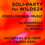⚲ 18:00 | Stadtteilladen Zielona Góra, Grünberger Straße 73, Berlin-Friedrichshain Wilde 24 is an Antifascist collective space in Neukölln where different kinds of collectives organise and work together. Against capitalism and patriarchy, supporting the Palestinian resistance and migrants struggles. Come to our solidarity party! Food Drinks Music DJ Kandeesha DJ Perfectits DJ Mowgli