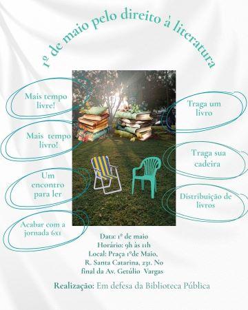 No contexto do dano causado ao setor infantil da nossa Biblioteca Municipal, aconteceu um protesto semanas atrás. Dando continuidade ao trabalho, uma rede informal em defesa da Biblioteca Pública Municipal Prefeito Rolf Colin 100% pública está formada, composta por frequentadores, frequentadoras, trabalhadores e trabalhadoras da palavra escrita e falada. Na perspectiva de dar continuidade à luta comunitária pelo direito à literatura e à cidade, inclusive com a ampliação de novos espaços públicos de leitura, além do fortalecimento dos já existentes, convidamos você para uma manhã de leitura. O 1º de maio é uma data histórica de luta da classe trabalhadora […]
