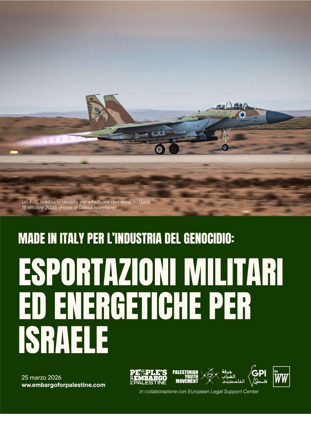Presentazione del Dossier “Made in Italy per l’industria del genocidio: esportazioni militari ed energetiche per Israele” (sabotiamo la guerra)