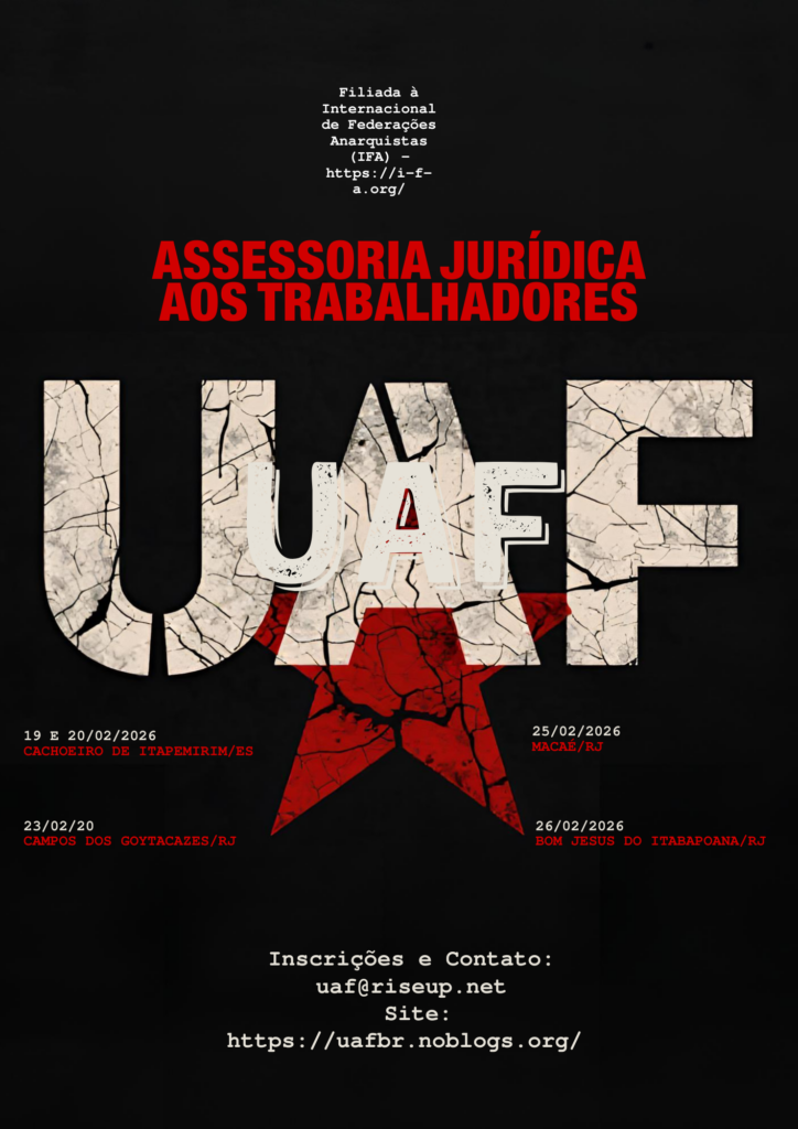 O edifício podre do capitalismo global entra em convulsão terminal. Suas fundações, erguidas sobre exploração e ecocídio, rangem até à exaustão. Este não é um acidente de percurso, mas o desfecho lógico de um sistema que consome vidas e planetas com a mesma frieza. Diante desse iminente colapso civilizacional, a pergunta crucial não é como salvar as ruínas, mas como garantir que, na queda, esmaguemos de vez o altar do Capital, do Estado e de toda hierarquia. E a resposta, clara e urgente, é a da ação anarquista: que os explorados e oprimidos sejam, sem qualquer mediação ou piedade, os […]
