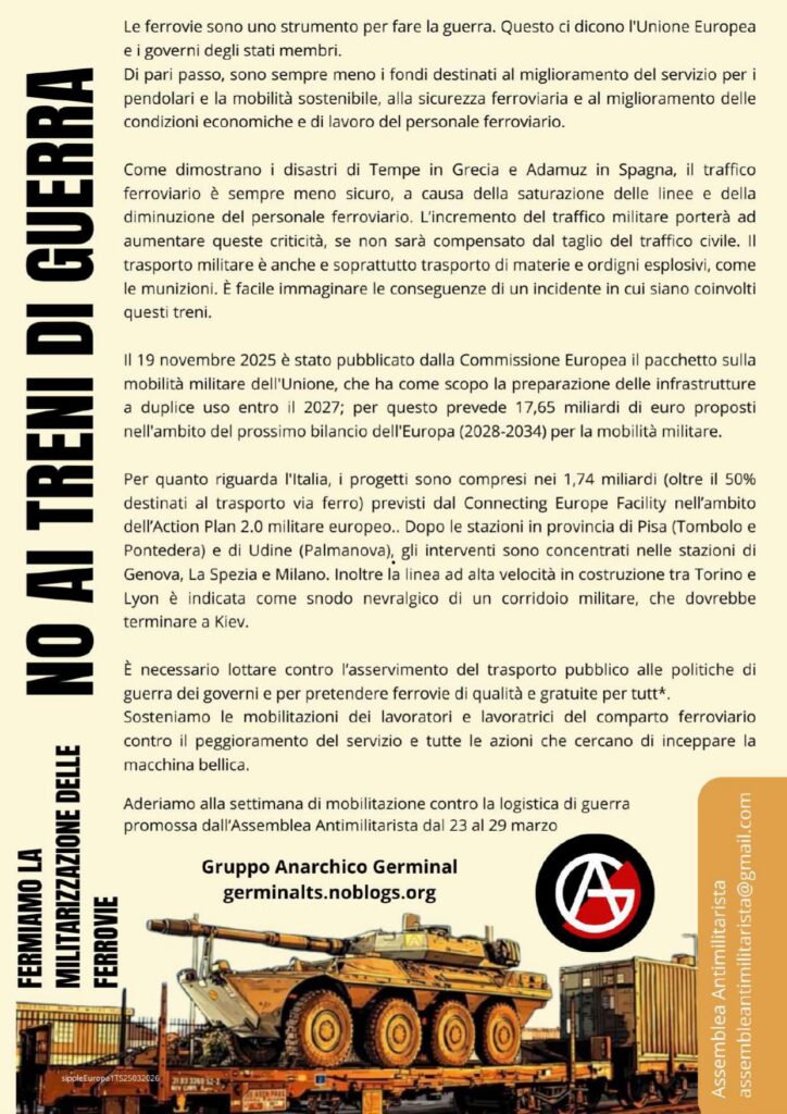 In riferimento al progetto per la Circonvallazione Ferroviaria di Rovereto pubblichiamo gli appuntamenti di tre incontri di controinformazione che l’area No TAV del Trentino e dell’Alto Adige – mentre si svolge il percorso istituzionale di Dibattito Pubblico sull’opera – organizza sulle relazioni dell’opera con il territorio e chi lo abita e sulla reale utilità dell’intero quadruplicamento ferroviario Verona-Fortezza cui l’opera appartiene. 2026-04-09_29- Incontri Rovereto – L’OPERA, LE PERSONE Il Dibattito Pubblico sulla Circonvallazione Ferroviaria di Rovereto – Lotto 3 b del programma di quadruplicamento delle tratte di accesso alla Galleria di base del Brennero, iniziato il 9.3.2026, si svolge sulla […]