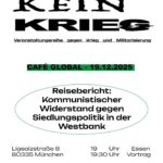 Café Global 19.12. – 19 Uhr Reisebericht: Kommunistischer Widerstand gegenSiedlungspolitik im Westjordanland (München International)