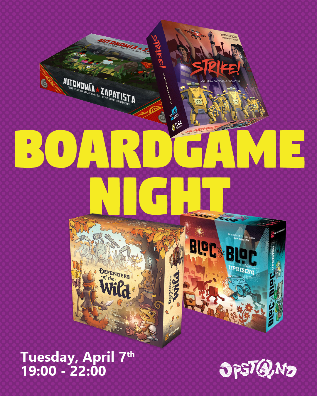 On Tuesday, we will be hosting a game night for people of all skill levels. Feel free to bring your own games. It will also be regular opening night, you are welcome to check the library too. 📅 Tuesday April 7th ⏲️ Time: 19h00 – 22h00 📍 De Opstand, The Hague (ask your network, DM, or e-mail for the address at boekenwinkelopstand@riseup.net) _________ Accessibility information: the event is on the ground floor. There is a (steep) ramp for wheelchair accessibility. A quiet room is also available. The Opstand library and books are upstairs and only accessible via stairs. We encourage […]