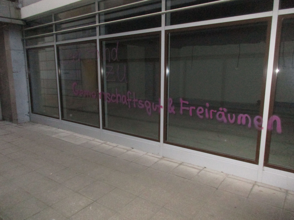 Ein selbstverwaltetes queeres Jugenzentrum in der Innenstadt? Ein Infoladen? Oder ein Begegnungsraum mit Küfa-Küche? Wir haben viele Ideen, was Freiburg braucht, anstatt dem nächsten x-beliebigen Konsumtempel.Und wir können euch eins sagen: Platz genug dafür gibts sofort, hier und jetzt! Wir haben letzte Nacht drei leerstehende Ladenflächen in bester Lage markiert. Lasst uns Leerstand angreifen, sichtbar machen und neu besetzen! Zwei sind in der Nähe vom Europaplatz in der KaJo, das dritte ist ein Autohaus beim Pressehaus. Und mal ganz ehrlich, was könnte man alles damit machen! Vielleicht ein Raum für Theaterproben und Konzerte. Und dabei sogar noch Platz für eine Werkstatt oder […]