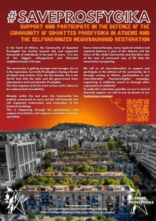 No coração de Atenas, a Comunidade Ocupada de Prosfygika acolheu, abrigou, alimentou e apoiou milhares de pessoas nos últimos 15 anos. É um dos maiores bairros auto-organizados e libertados da Europa. A Comunidade está se tornando mais forte, mas a repressão também. Atualmente, Prosfygika está sob ameaça de ataque e despejo. Na última década, esta é a quinta vez que o Estado e a região tentam despejar e saquear Prosfygika. Desta vez, a ameaça parece ser a mais séria e está prestes a ser executada imediatamente. Ao longo do último ano, a comunidade já anunciou publicamente que dará continuidade à restauração […]