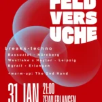 Seit den 1980ern ermöglichten die Räume in der Erlanger Feldstraße 22 – übergangsweise der Sophienstraße 94 – politisches, solidarisches und antifaschistisches Engagement. Nun beginnt ein neues Kapitel. Im März eröffnen wir einen neuen Raum im Herzen des Zollhausviertels.Feiert schon jetzt mit uns im Zentrum Wiesengrund diesen neuen Feldversuch – mit Breaks und Techno- und sammelt dabei Geld für die neuen Räumlichkeiten.Eine Veranstaltung der aktiven Gruppen und Initiativen der ehemaligen Feldstraße 22. 🗓️ 31. Januar ⏱️ Ab 21:00 Uhr 📍 Zentrum Wiesengrund
