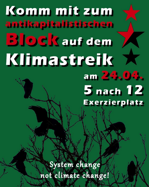 Kommt in den antikapitalistischen Block auf dem Klimastreik am 24.4.2026! (TKKG - TurboKlimaKampfGruppe Kiel)