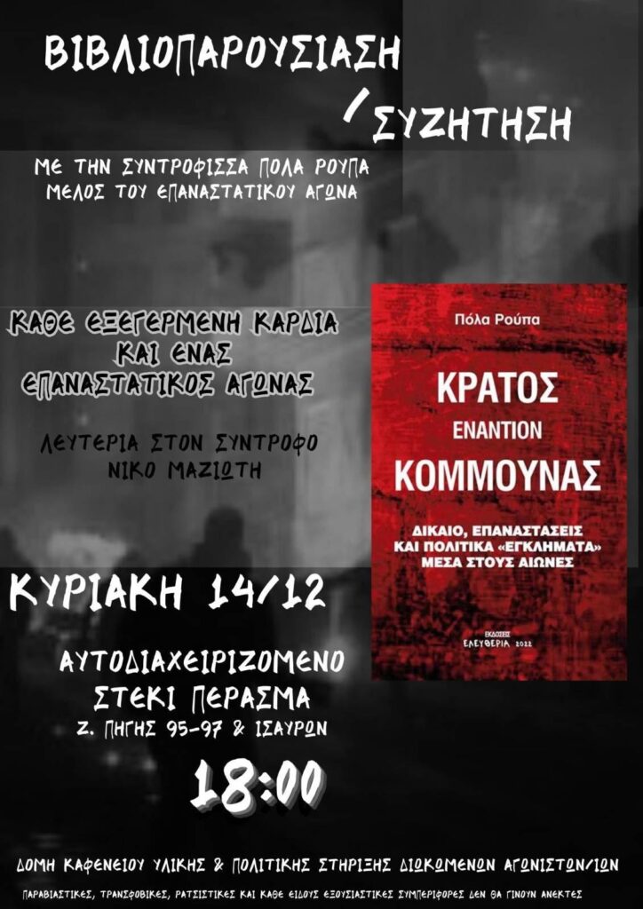 DESBORDANDO LA ANGRYJornada en memoria del Angry y Alex Grigoropoulos Jueves 11 de diciembre 2025(a 12 años del asesinato del pelado Angry)A las 18:00 hrs. – Dirección por correo electrónico Proyección: Semillas de Diciembre (2009 – 28 mins.) Música en vivo: Conversatorio: Como sostener la memoria anárquica en la era de la efímera virtualidad Biblioteca Anárquica Nihil Sebastián Oversluij Seguelbiblioangryantiso@riseup.net / biblioangry.noblogs.org