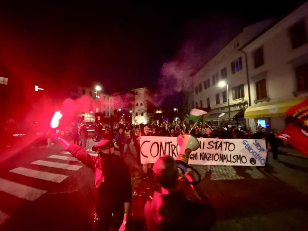 Ieri a Udine un enorme corteo di oltre 10000 persone ha percorso il centro per urlare la propria rabbia contro la partita di calcio Italia-Isr4ele. Lo spezzone anarchico promosso dal Coordinamento Libertario Regionale ha visto la partecipazione di oltre un centinaio di persone dietro lo striscione “Contro ogni stato contro ogni nazionalismo stop genocidio” cui seguivano altri striscioni. Tanti gli slogan contro tutti gli stati e tutti i confini. In uno degli interventi dall’amplificazione è stata lanciata la partecipazione al corteo antimilitarista del 29 novembre a Torino.