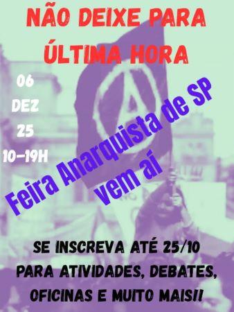 Não perca o prazo de inscrições para as atividades da XV Feira Anarquista de SP! (Agência de Notícias Anarquistas - ANA)