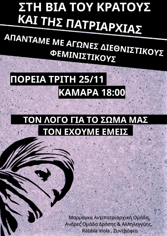 Το Δεκέμβριο του 1999 η συνέλευση του ΟΗΕ όρισε την 25η Νοεμβρίου ως Παγκόσμια Ημέρα για την Εξάλειψη της Βίας κατά των Γυναικών, με στόχο να αναδείξει τις πραγματικές διαστάσεις αυτού του φαινομένου. Μια τέτοια ημέρα, δεν μπορεί παρά να μας βρει στον δρόμο, όχι επειδή οι παγκόσμιες ημέρες σημαίνουν κάτι ιδιαίτερο για μας, αλλά επειδή από τη δεκαετία του ’80, που οι τότε γυναικείες οργανώσεις την είχαν καθιερώσει άτυπα εις μνήμην των αδελφών Mirabal, διαφορετικά Las Mariposas (οι πεταλούδες), δεν σταματήσαμε να θρηνούμε αδερφές μας. Οι αδερφές Mirabal πολέμησαν ενάντια στο δομινικανό δικτατορικό καθεστώς του Τρουχίγιο και γι’ αυτό […]
