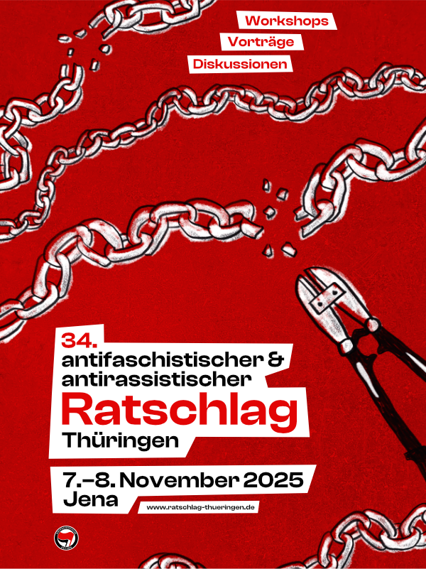 Seit Anfang der 1990er Jahre gibt es in Thüringen jedes Jahr eine Veranstaltung, um an die Novemberpogrome von 1938 zu erinnern. Diese Veranstaltung heißt „antifaschistischer und antirassistischer Ratschlag“. Hier treffen sich Menschen, die gegen Faschismus und Rassismus kämpfen. Sie diskutieren über wichtige Themen und planen gemeinsame Aktionen. Mehr zum Ratschlag hier. Wir empfehlen euch a) am Ratschlag teilzunehmen und b) den Workshop der Genoss*innen der „QueerAnifa Thürignen“ Phase 1 zu besuchen: Rückblick + Ausblick: Bedrohung von Queers und CSDs (Arbeitstitel) Die Bedrohung von queeren Menschen und CSDs hat über die letzten Jahre kontinuierlich zugenommen; auch dieses Jahr konnte kein CSD […]