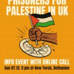 ⚲ 17:00 |New Yorck, Bethanien, Mariannenplatz_2A, 10997 Berlin Doors open at 5 pm, call starts at 6 pm INFO AND SUPPORT EVENT FOR THE PRISONERS ON HUNGER STRIKE Prisoners for Palestine is a prisoner-led collective in the UK representing all those detained under charges related to Palestinian liberation. 6 of the 32 political prisoners for Palestine in the UK are on HUNGER STRIKE – now in its fifth week. This is the largest hunger strike since 1981, yet the mainstream media refuses to cover it, and the Government acts like it isn't happening. Join us in learning about and supporting […]