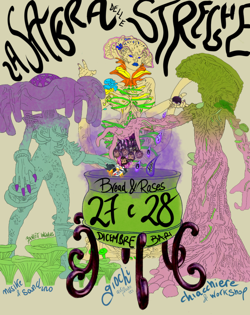 Diffondiamo: Festa di paese al Bread and Roses con i giochi delle sagre autoprodotti, musiche e lucine di natale. Il 27 e 28 dicembre il Bread si veste di un’aurea stregata e fatata. Le streghe da sempre sono custodi di segreti e pozioni che permettono la rigenerazione di un universo lontano da sbirri e fasci. E le fate, grazie alla loro magia ci lasciano entrare in uno spazio utopico e senza frontiere dove qualsiasi nostro desiderio può diventare realtà. In queste due giornate il bread darà vita alla sagra delle streghe, ci saranno i giochi delle sagre di paese autoprodotti […]