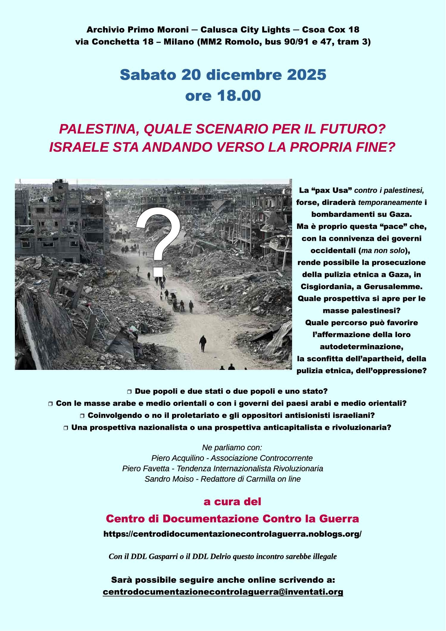Durante la mobilitazione in solidarietà alla Sumud Flottilla e contro il genocidio in Palestina la stampa genovese ha dato notizia di un’inchiesta del pm Longo per concorso in devastazione e saccheggio. Per i fatti accaduti durante la manifestazione del 5 maggio 2024 in solidarietà alle 8 persone arrestate fuori dall’ex Latteria Occupata la Procura ha chiesto 26 misure cautelari in carcere, tutte inizialmente respinte dal Gip, poi tramutate in 13 obblighi di dimora con rientro notturno e obbligo di firma, al momento sospesi dal ricorso in Cassazione. A due giorni dagli arresti, avvenuti il 3 maggio 2024, c’è stato un […]