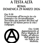 Lunedì 6 aprile nella località di Castel San Felice – comune di Sant’Anatolia di Narco, in Valnerina, Umbria –, un altro momento di ricordo per la compagna anarchica Sara Ardizzone. Salutava sempre Amica, compagna, collega o vicina di casa, Sara era solare, sensibile, ironica, leale e disponibile. Donna di ideali che gridano libertà, con fame di giustizia e con la voglia di lottare per ogni forma di oppressione.Amici, compagni, colleghi o vicini di casa noi sentiamo il bisogno, e anche la responsabilità, di ricordare Sara nella sua interezza, integrità e coerenza.Per piangere e per ridere insieme.Ci vediamo lunedì 6 aprile […]
