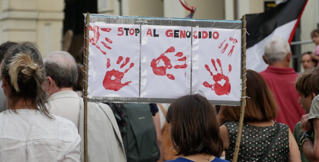 //«Democracia», «valores occidentales», «Derecho internacional» no son solo palabras vacías enterradas bajo los escombros de Gaza; son la «escolta» de esas bombas, esa sangre, esos muertos.// La asamblea Sabotiamo la Guerra (Italia) es una iniciativa anarquista y antiestatal que se ha autoconvocado en diversas reuniones abiertas en los últimos dos años (aunque la lucha antimilitarista que lxs compañerxs han recorrido data de 2016) en ciudades como Génova, Turín, Rovereto, Lecce, Carrara, Mestre y Milán, con la intención de discutir públicamente los acontecimientos de la guerra en curso, abordando la geopolítica del belicismo estatal (como la guerra ucraniana-rusa y el genocidio […]