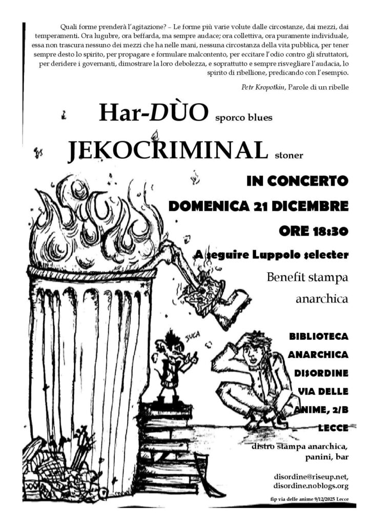 Comunicado nº7 do Grupo Libertação Popular – GLP, Brasil, dezembro de 2025. Contato: glp.nacional@inventati.org 1 – Os atos convocados para esse domingo (14/12) com as palavras de ordem “Congresso inimigo do povo” e “Sem anistia”, pelas frentes governistas Brasil Popular e Povo sem Medo, assim como por todos os partidos e centrais de esquerda, ao contrário de um combate real em defesa dos direitos do povo pobre e trabalhador percorrem na verdade interesses eleitorais e de lobby parlamentar. O circo eleitoral de 2026 começou. Uma conjuntura marcada pela manipulação, encenação e demagogia política em máximo grau. Como disse o socialista […]