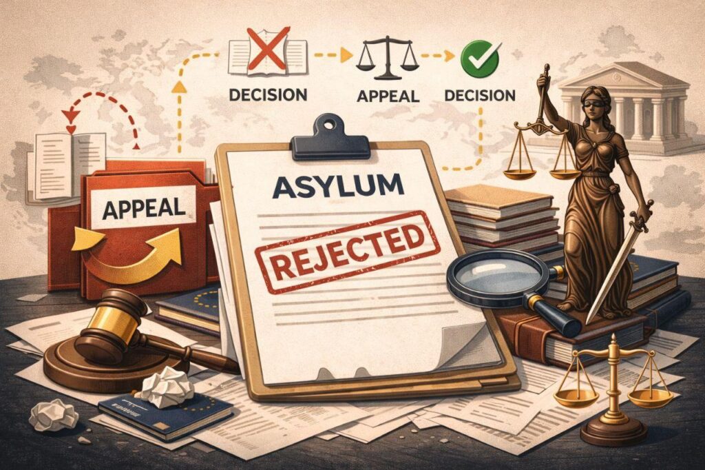 В рамках процедуры предоставления убежища отказ является не исключением, а структурным элементом системы. Европейские миграционные органы изначально выстраивают рассмотрение дела как процесс фильтрации, в котором положительное решение должно быть обосновано, а отказ — формально мотивирован и процедурно защищён. Понимание того, как именно формируется отказ, по каким основаниям он выносится и какие последствия влечёт, является ключевым для оценки перспектив апелляции и дальнейших стратегических действий заявителя. Отказ как юридическое решение Распространённая ошибка заявителей заключается в восприятии отказа как утверждения о «лжи» или «недостоверности» в бытовом смысле. На практике отказ — это юридическое заключение, основанное на совокупной оценке правовой релевантности, соответствия критериям защиты […]
