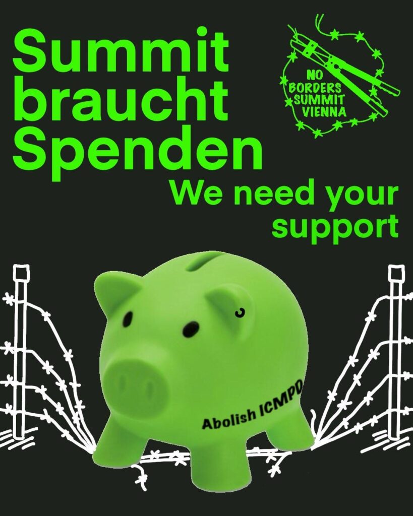 Der No Border Summit findet schon in ein paar Tagen statt und obwohl wir rein selbst organisiert und unabhängig sind brauchen für die zahlreichen Aktivistinnen, Künstlerinnen, Materialien, Essen etc. eure Spenden. Unterstützt uns gerne auf diesem Konto!⬇️⬇️⬇️ Push-Back Alarm AustriaAT60 1400 0100 1021 6724Betreff: Spende Summit +++++++++++++++++++++++++++ We need your support ‼️ The No Border Summit is going to take place in a few days and although we are completely self organised we still need your donation for our full programm, the artists, activists, materials and food we still need your donation! Please support us on this account⬇️⬇️⬇️ Push-Back Alarm […]