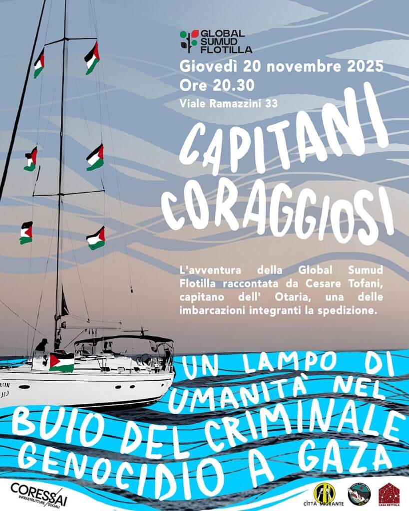 Il nostro paese è stato attraversato da un potente movimento di solidarietà verso la popolazione palestinese di Gaza colpita dall’aggressione genocida israeliana.Due scioperi generali ed un fiume di iniziative si sono susseguite in tutte le città italiane coinvolgendo centinaia di migliaia di persone. Anche nella nostra città decine di iniziative e cortei enormi hanno attraversato e bloccato più volte Reggio Emilia.L’iniziale carattere umanitario della mobilitazione si è unito alla solidarietà con la missione della Global Sumud Flotilla, innescando una vera e propria detonazione popolare. È proprio con uno dei protagonisti della Flotilla, il capitano dell’Otaria Cesare Tofani, che vogliamo riprendere […]