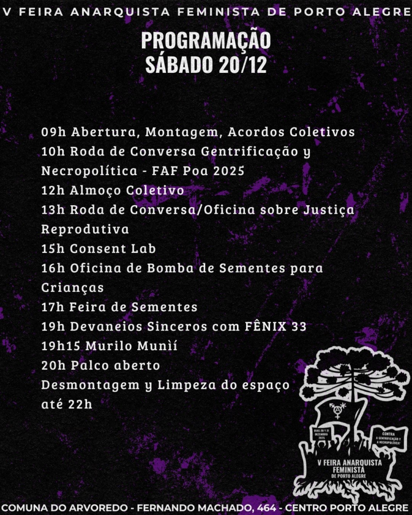 Programação V Feira Anarquista Feminista de Porto Alegre (FEIRA ANARQUISTA FEMINISTA DE POA (V edição - 2025))