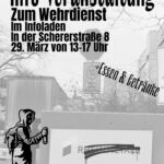 Wir teilen hier den Aufruf des bundesweiten Label Krieg dem Krieg : Deutschland ist offiziell viertgrößter Waffenexporteur weltweit. Rheinmetall weitet das Geschäft weiterhin aus und übernimmt zahlreiche Werften. Die Bundeswehr ist in unseren Schulen, Stadien, Messen und sogar auf unserem Dönerpapier sichtbar. Die Wehrpflicht wird erprobt und es ist wohl nur eine Frage der Zeit, bis es nicht bei Freiwilligen bleibt, sondern die Einzugsbescheide ins Haus flattern. Während die USA ihre Kriegspolitik im Mittleren Osten, Lateinamerika und in Afrika ausweiten, heizen Merz, Pistorius und Konsorten den Ukraine-Krieg weiter an und rüsten sich für einen großen Krieg gegen Russland. Währenddessen werden […]